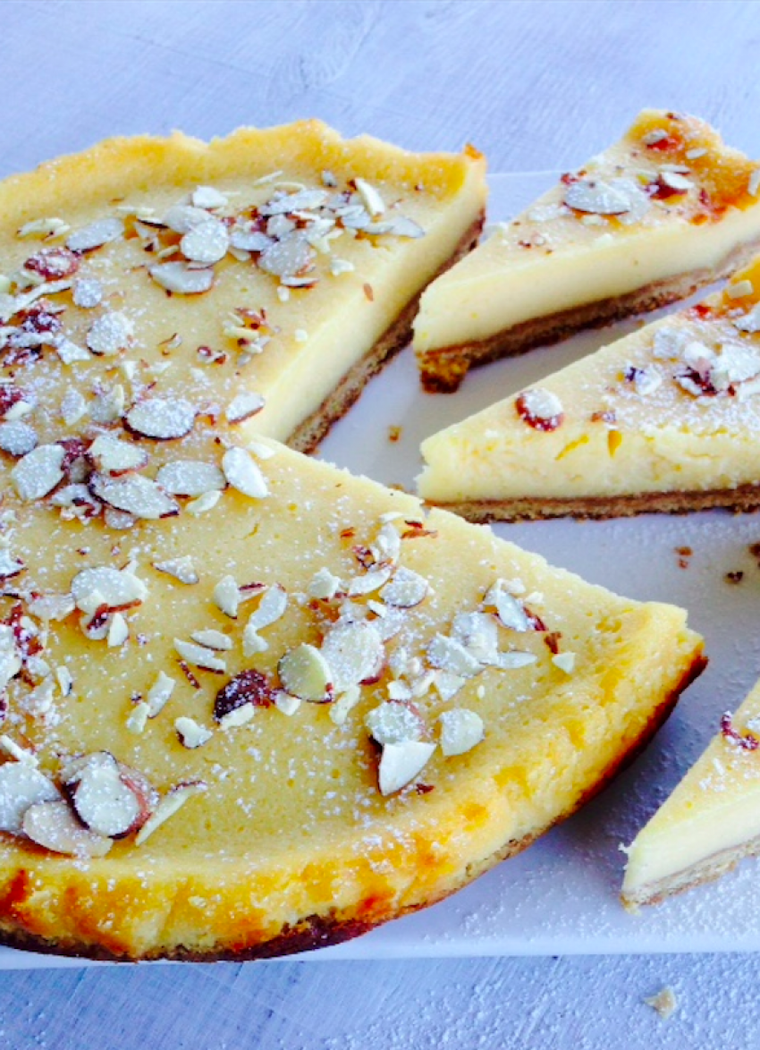 I’ve combined two of my favourite recipes to make this silky smooth tart; a crisp, nutty biscuit base and a tangy lemon filling – delicious!