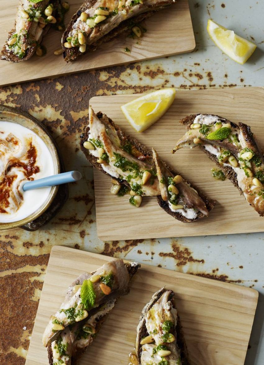 Mackerel on Sourdough Toasts with Pine Nut Gremolata