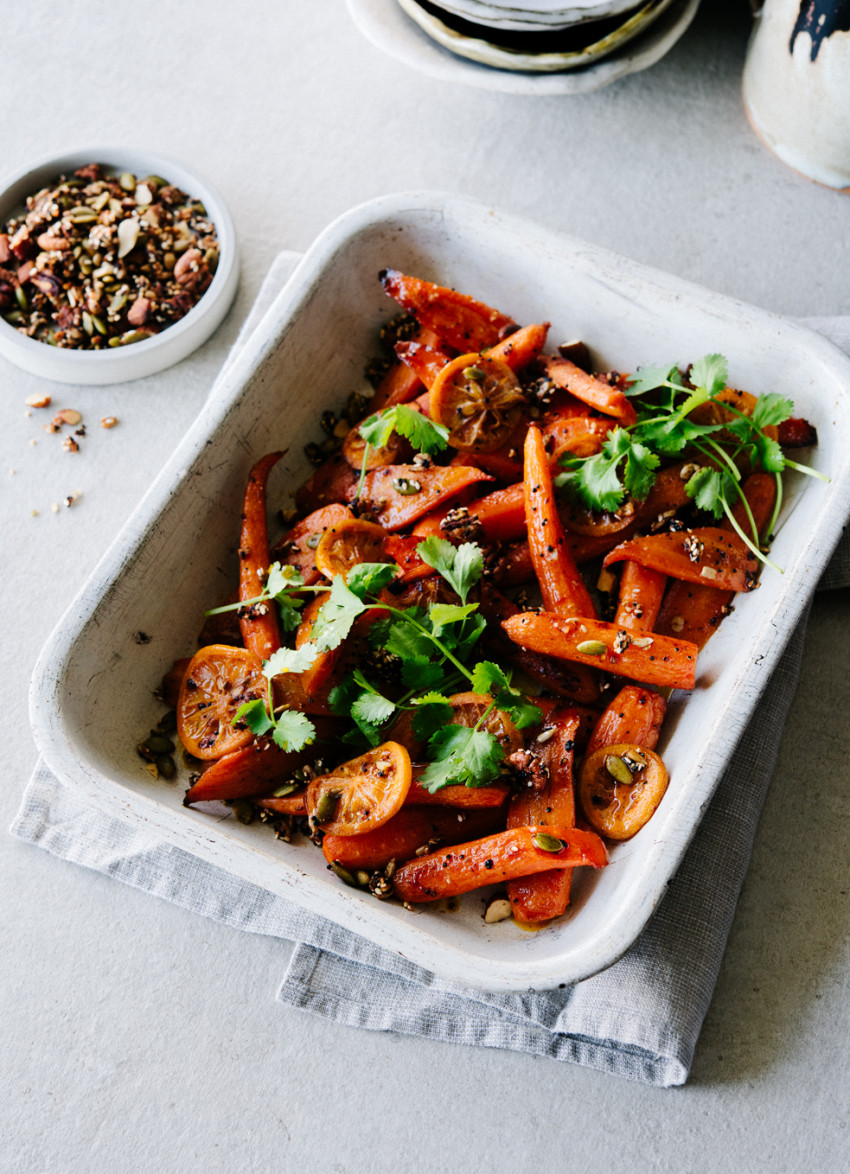 Place in a single layer on a lined baking tray and roast for about 40 minutes until the carrots are just tender and well coloured.