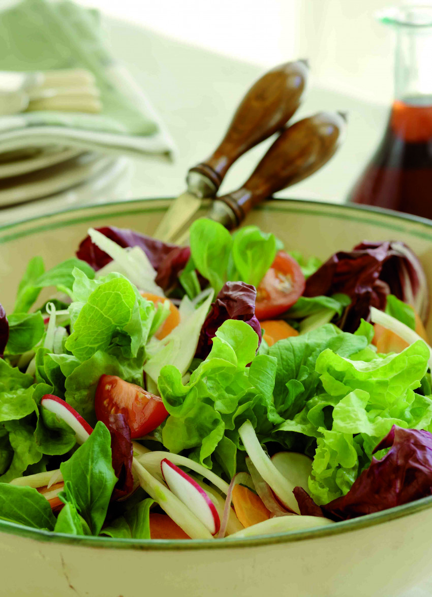 The contents of this mixed style of salad are usually determined by what is fresh and best on the day. You could also use cucumber, capsicums, small zucchini, red or green cabbage or other varieties of lettuce.