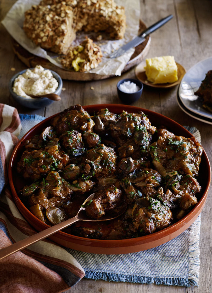 Oxtail with Guinness, Mushrooms and Soda Bread