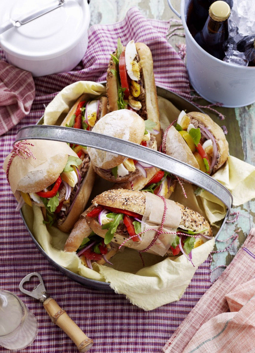 Originating in the South of France as a sandwich to eat at the beach, this tuna roll is perfect for any picnic. The longer it has time to sit before eating, the more flavoursome it becomes. I normally make mine the night before so the flavours permeate through and the bread is slightly softened. When packing your picnic, feel free to put heavier items on top of the sandwiches…they love being squashed.