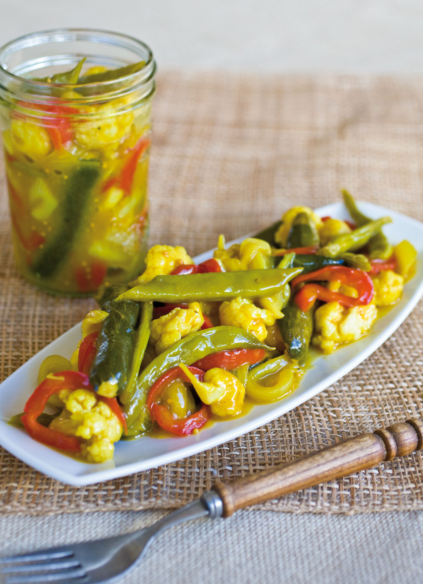Vegetables: Put the water and salt in a large bowl and stir to dissolve. Add the vegetables and cover with a plate to keep them under the brine. Leave for 8 hours. Drain and rinse the vegetables to remove the salt. Drain again.