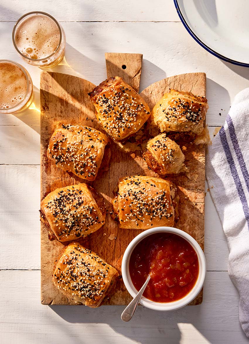 I’ve perfected this filling over the years and it allows the humble sausage roll to take its rightful place on the picnic table.