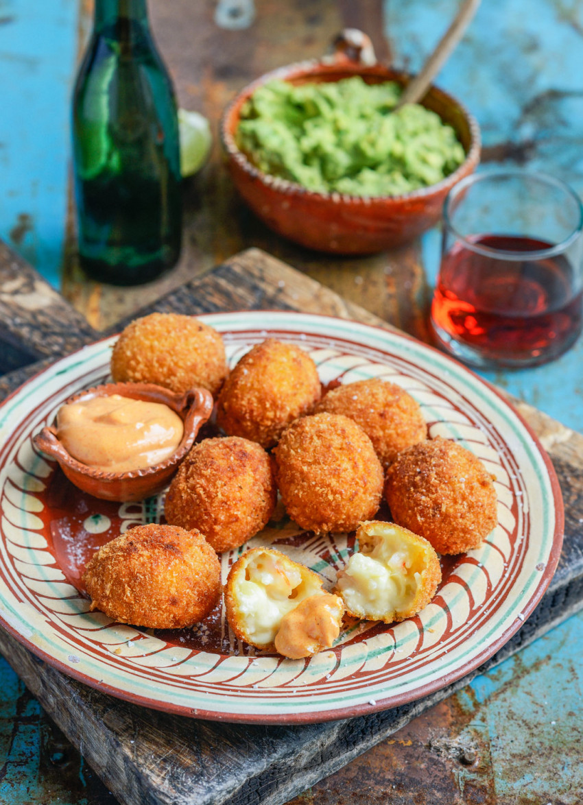When it comes to nibbles, it’s always fun to offer something hot. These prawn balls are a particular favourite – with their rich, creamy prawn-studded centres and crunchy exteriors, they’re delicious dipped in the sweet, smoky paprika aioli.