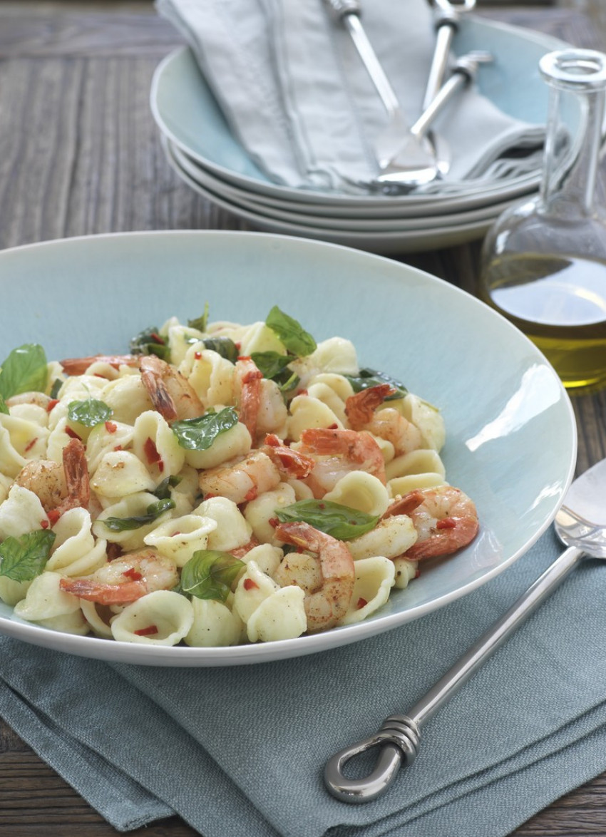 To serve: Fold the prawns and basil through the pasta and tip into a warm serving bowl.