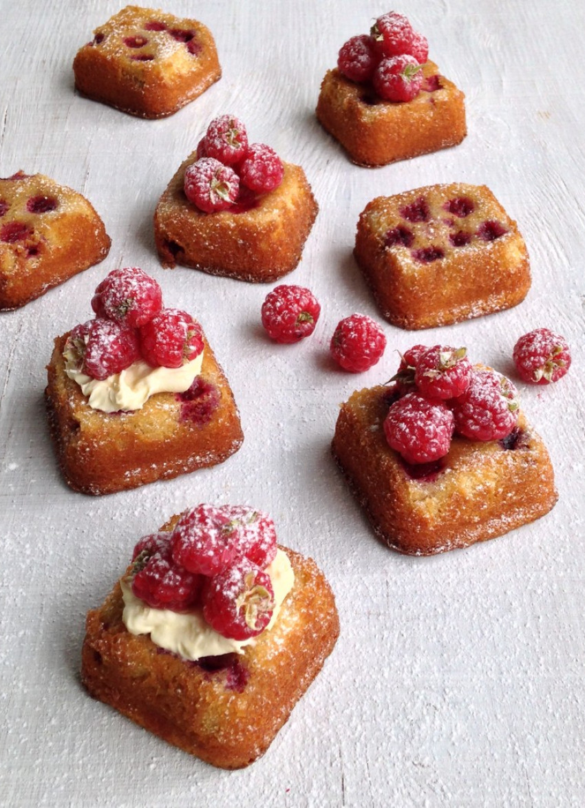 To serve: Three options – serve simply as is, just with raspberries or go all out and dollop with a spoonful of mascarpone then top with raspberries and a dusting of icing sugar. Makes 8.