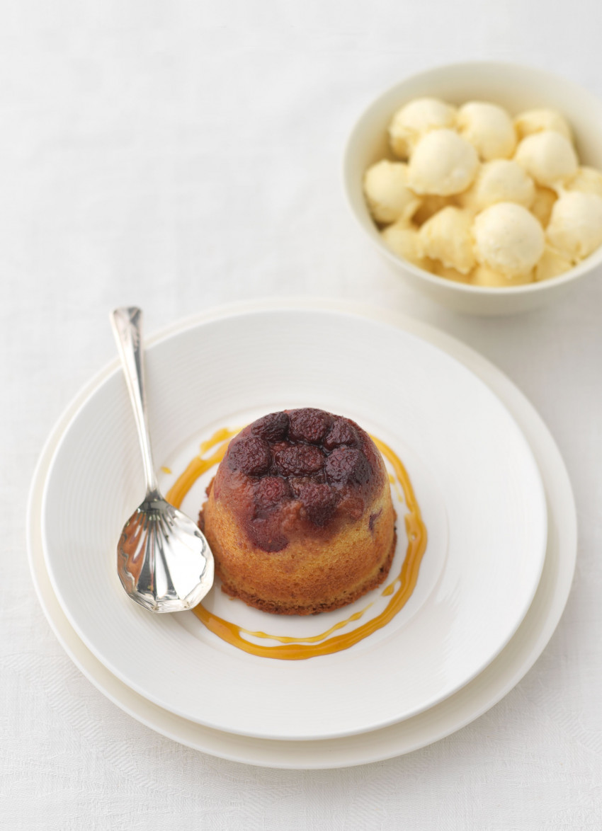 Spoon 1 tablespoon of golden syrup into the bottom of each ramekin and top with 8 frozen raspberries just before adding the sponge mixture. Using frozen berries means they retain their shape during cooking.