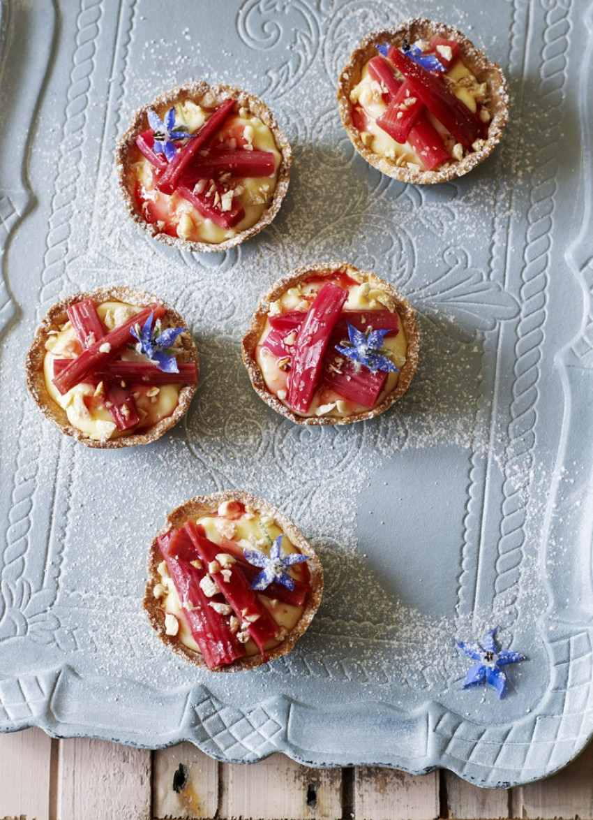Rhubarb and Custard Tarts with Crushed Hazelnuts