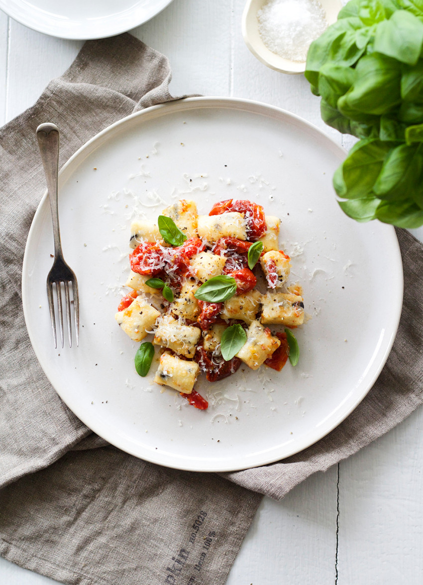 Homemade gnocchi is pretty straightforward to make when you use ricotta instead of potatoes. It also has a lovely lighter texture. This is a dish of simple but hugely satisfying flavours. Be generous with the fresh basil when serving.