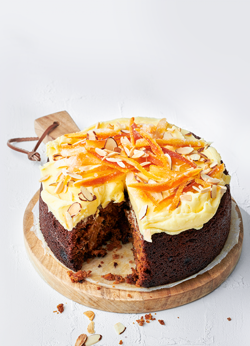 Serving suggestions: Leave the cake plain and dust with icing sugar or top with Whisky Cream Cheese Icing (see right) and toasted almonds. We also topped it with Candied Citrus Peel; you can find the recipe on the dish website.