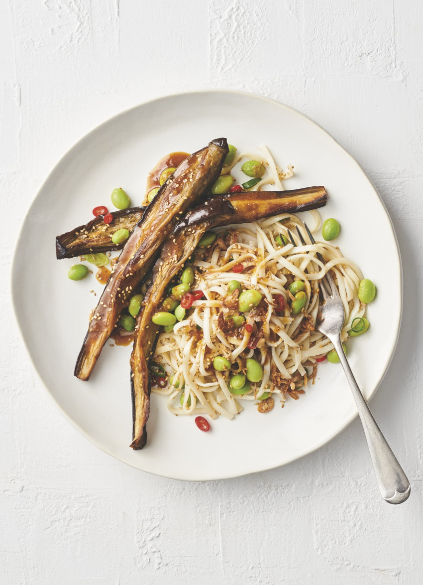 Roasted Eggplant and Edamame Noodle Salad
