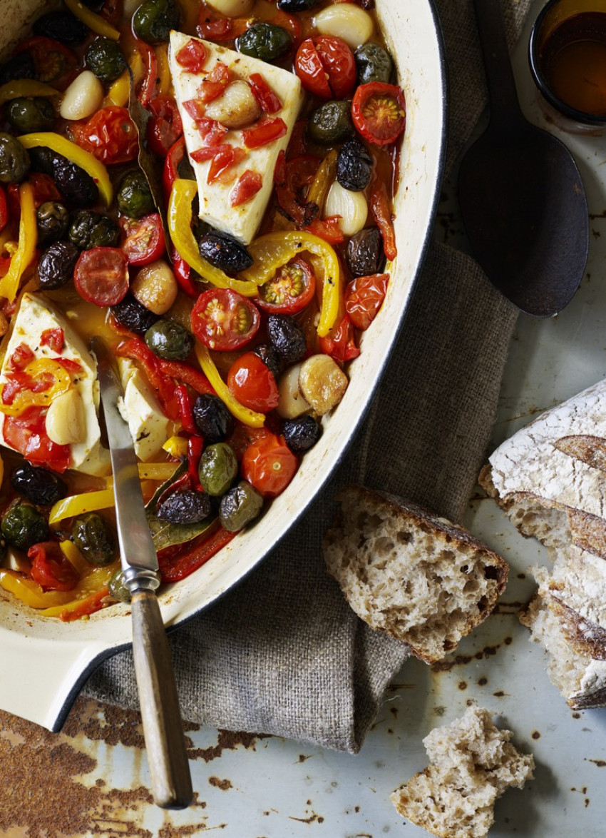 Spoon some of the oil from the pan over the feta and top with a grind of black pepper.