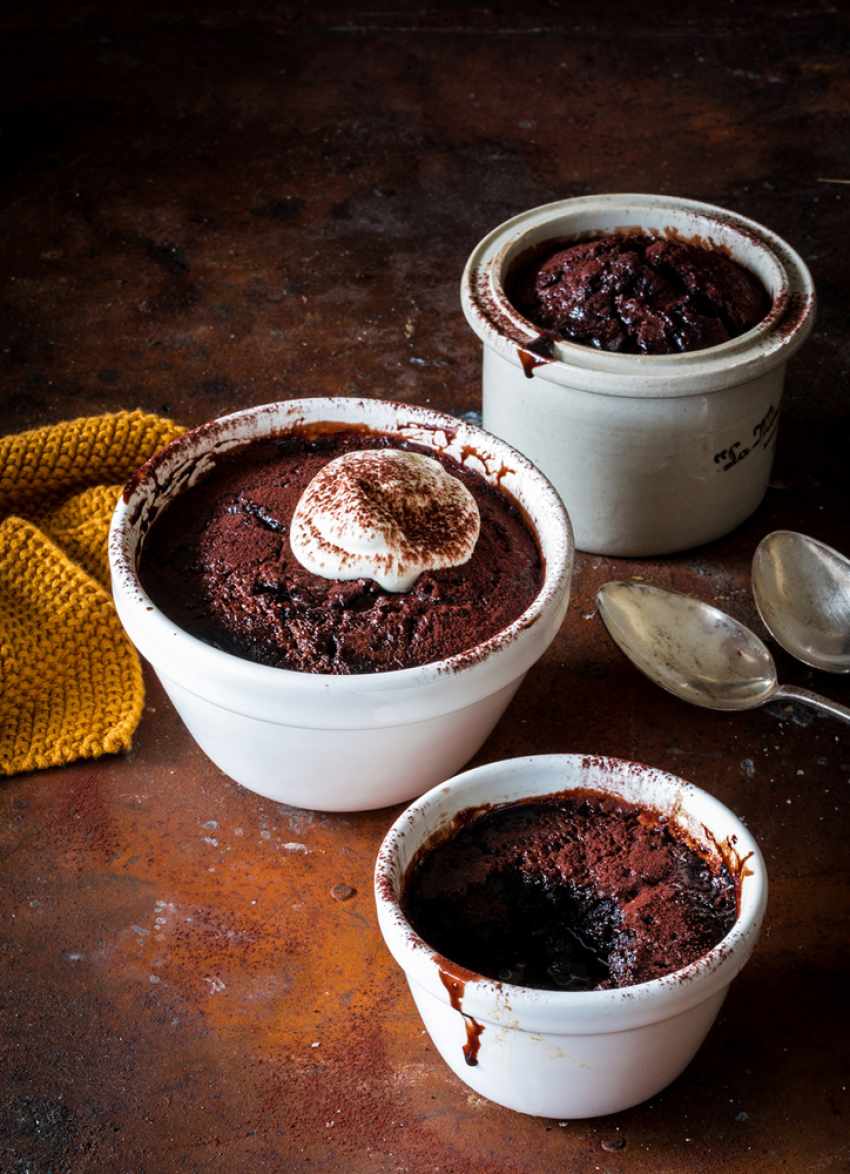 Rum, Raisin and Chocolate Self-saucing Puddings
