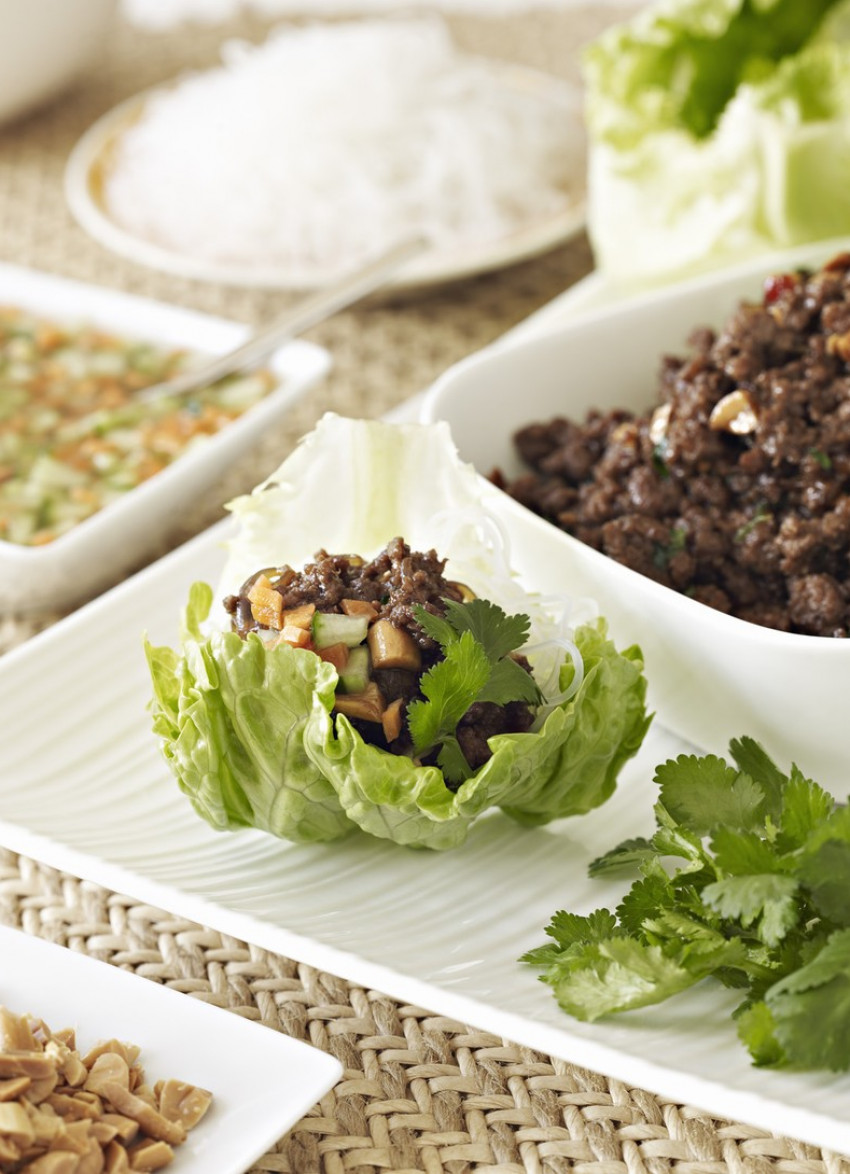 Satay Beef, Glass Noodles and Lettuce Rolls