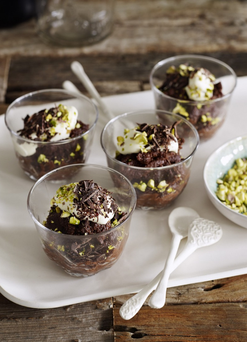 This must be one of the easiest chocolate puddings to make and can be jazzed up with any number of garnishes.