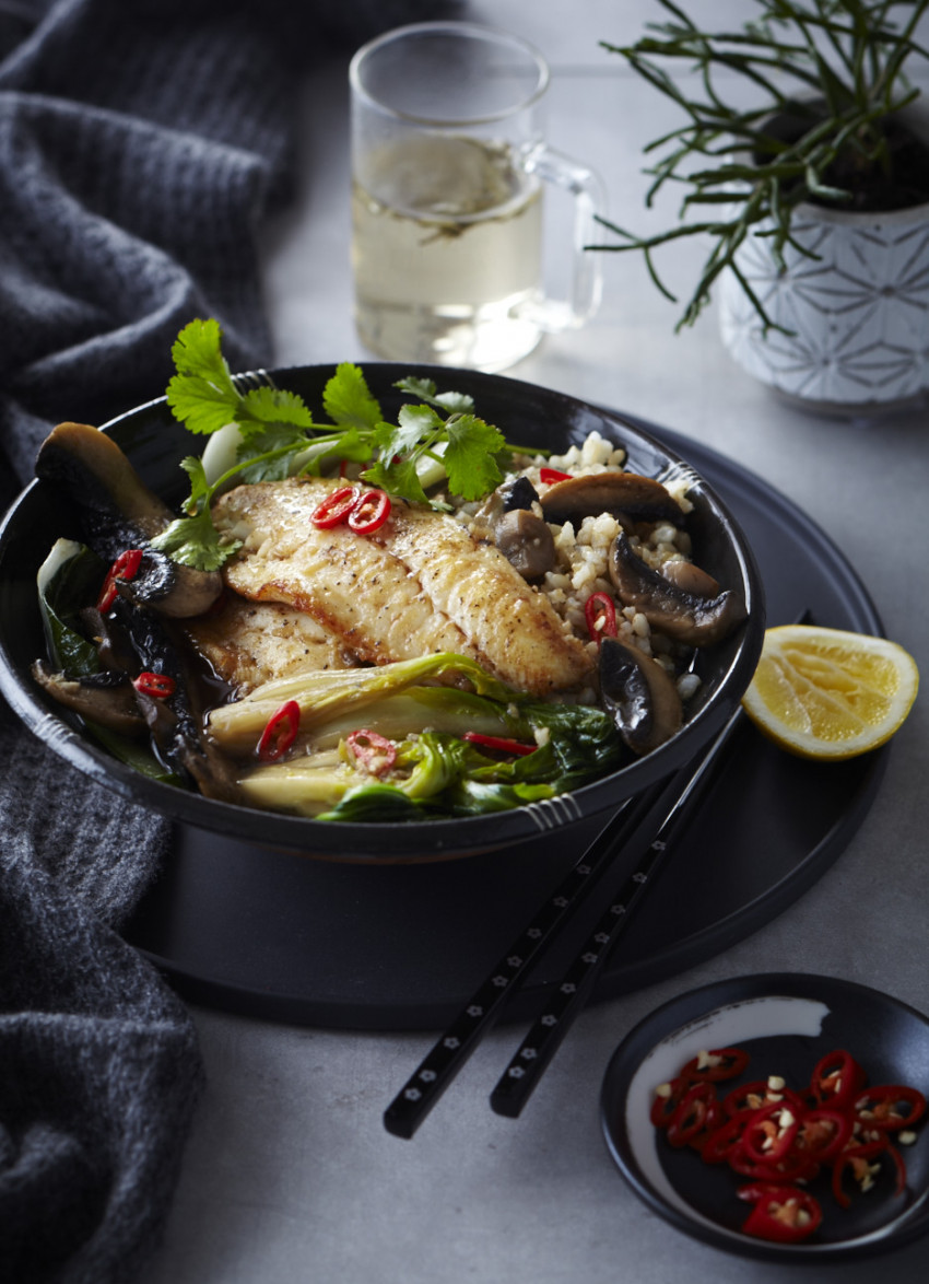 A big bowl of steaming fragrant broth brimming with vegetables, brown rice and tender fish is perfect for the cold winter nights.