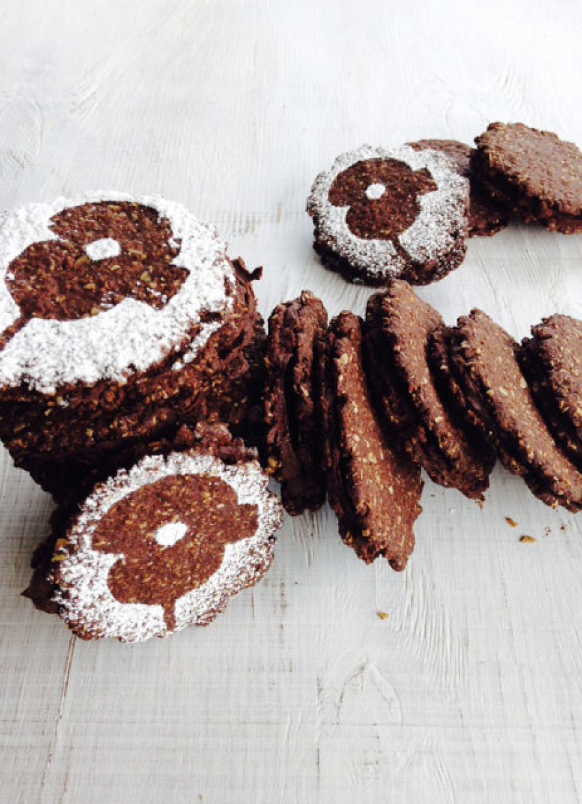 To assemble: Spread half of the biscuits with the chocolate ganache and sandwich together with the remaining biscuits. Makes about 22 double biscuits.