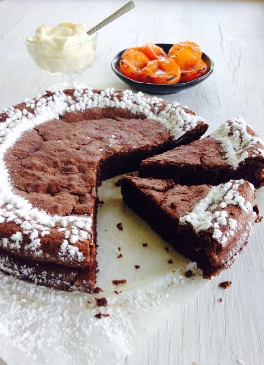 This moist and tender nut cake is so delicious as well as being gluten-free. Spices and citrus punch up the flavour and a side of honey grilled apricots makes a wonderful addition.