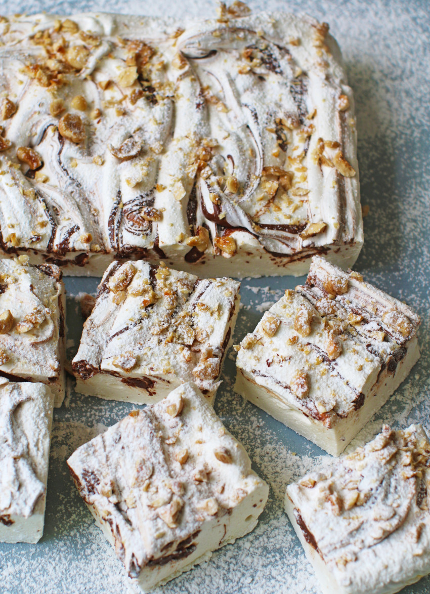 Once you’ve mastered this easy and basic marshmallow recipe, the flavour combinations are endless: dried and freeze-dried fruits, coffee, teas, nuts, caramel and spices are but a few. I’ve given you two options - a swirl of spiced Nutella or a simple salted caramel.