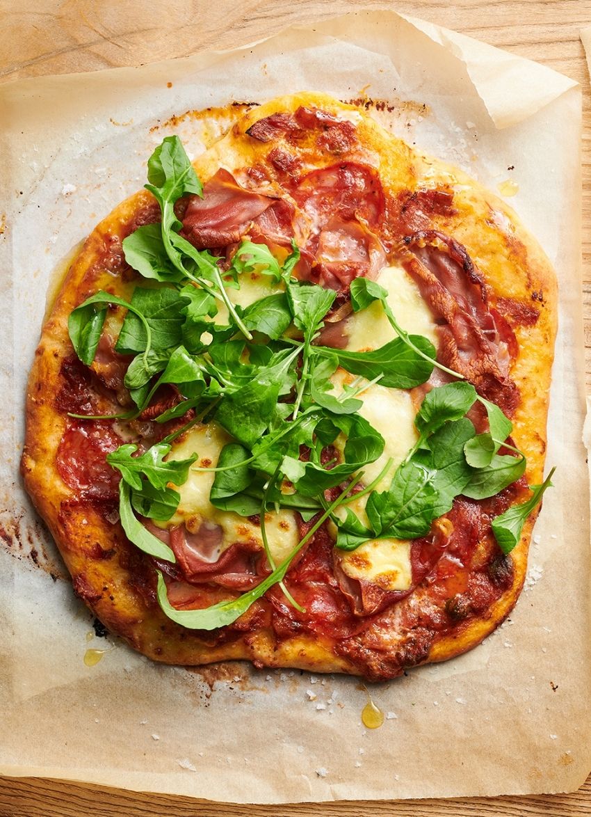 Chilli salami and crispy prosciutto give this pizza a spicy kick that’s finished with the peppery zip of rocket.