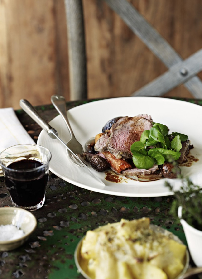To serve: Slice the lamb thinly against the grain. Arrange on serving plates along with the roast vegetables. Spoon over any pan and resting juices.