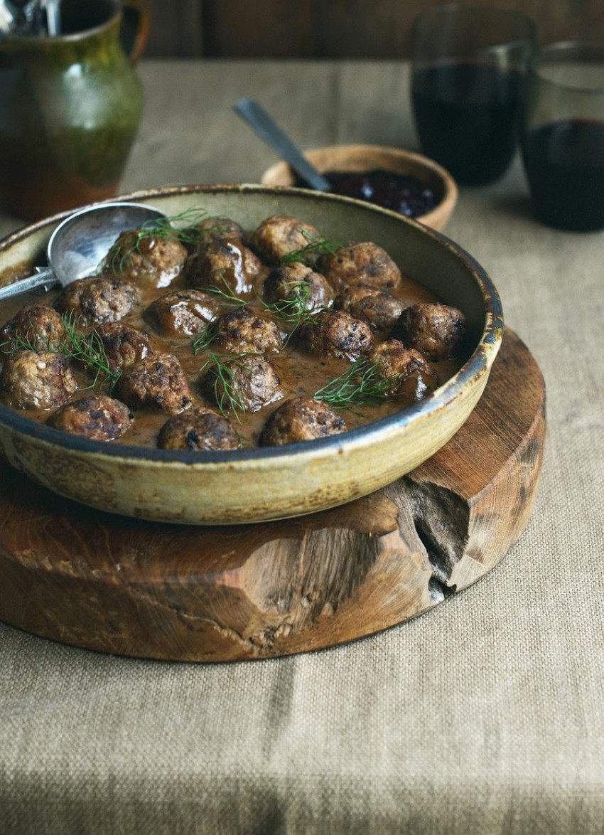 Season well to taste with salt and pepper. If your pan is oven proof you can now just pop meatballs into the sauce and reheat together for 5–10 minutes, and if not transfer to an oven proof dish. Serve meatballs garnished with fennel or dill sprigs and either a good dollop of mashed potatoes or wide egg noodles. Spoon over gravy and enjoy with extra lingonberry jelly on the side.