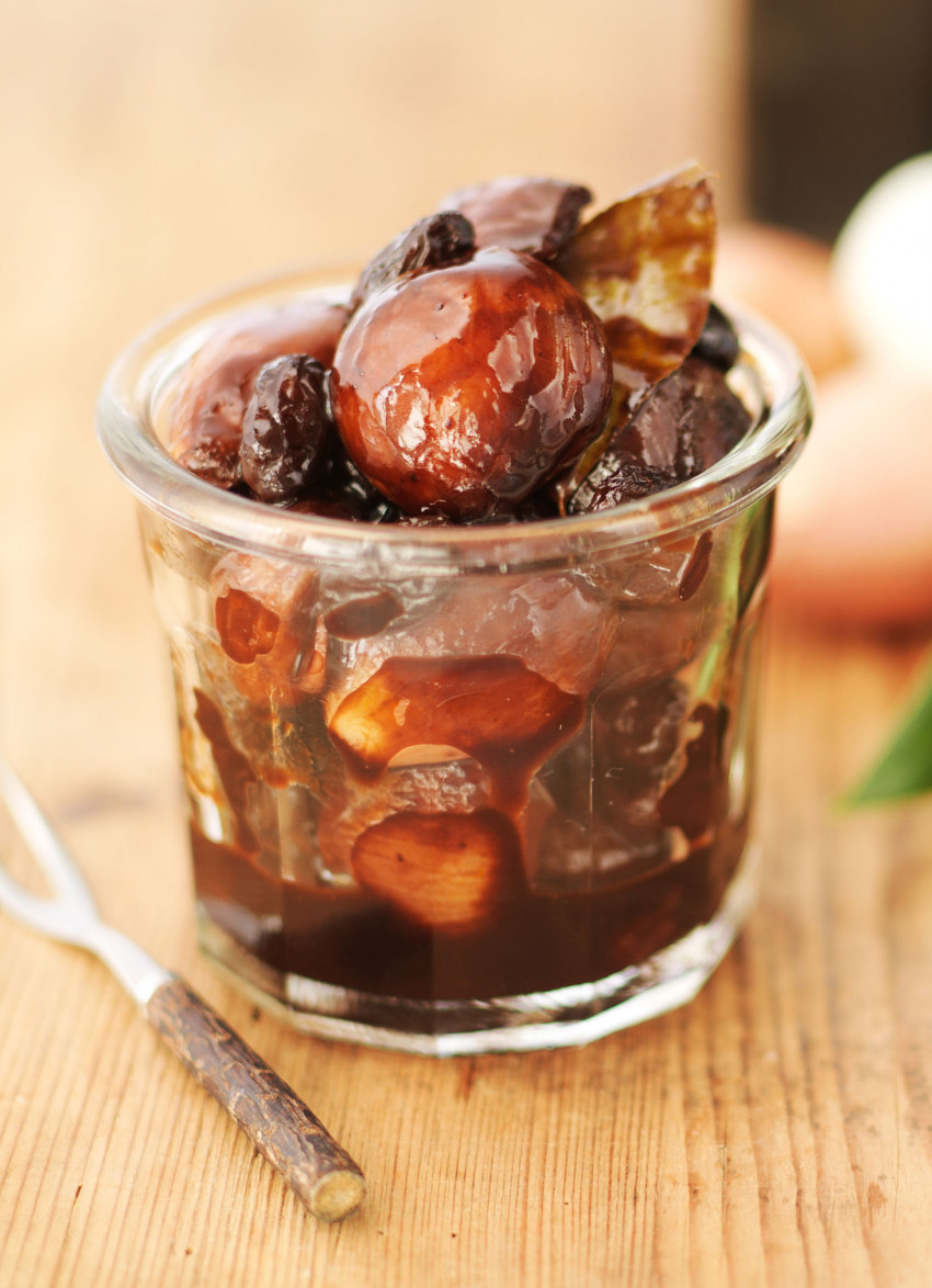 Add the garlic, rosemary, bay leaves, brown sugar and the tomato paste and stir to combine. Add the red wine, allowing it to bubble up then stir in the balsamic vinegar and raisins. Season and cover. Cook until the shallots are tender, stirring occasionally. Remove the lid towards the end of cooking and simmer until the juices are reduced and syrupy.