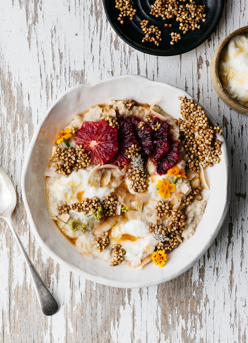 Three-Grain, Coconut and Apple Porridge with Honey and Cinnamon Roasted Kasha (gf)