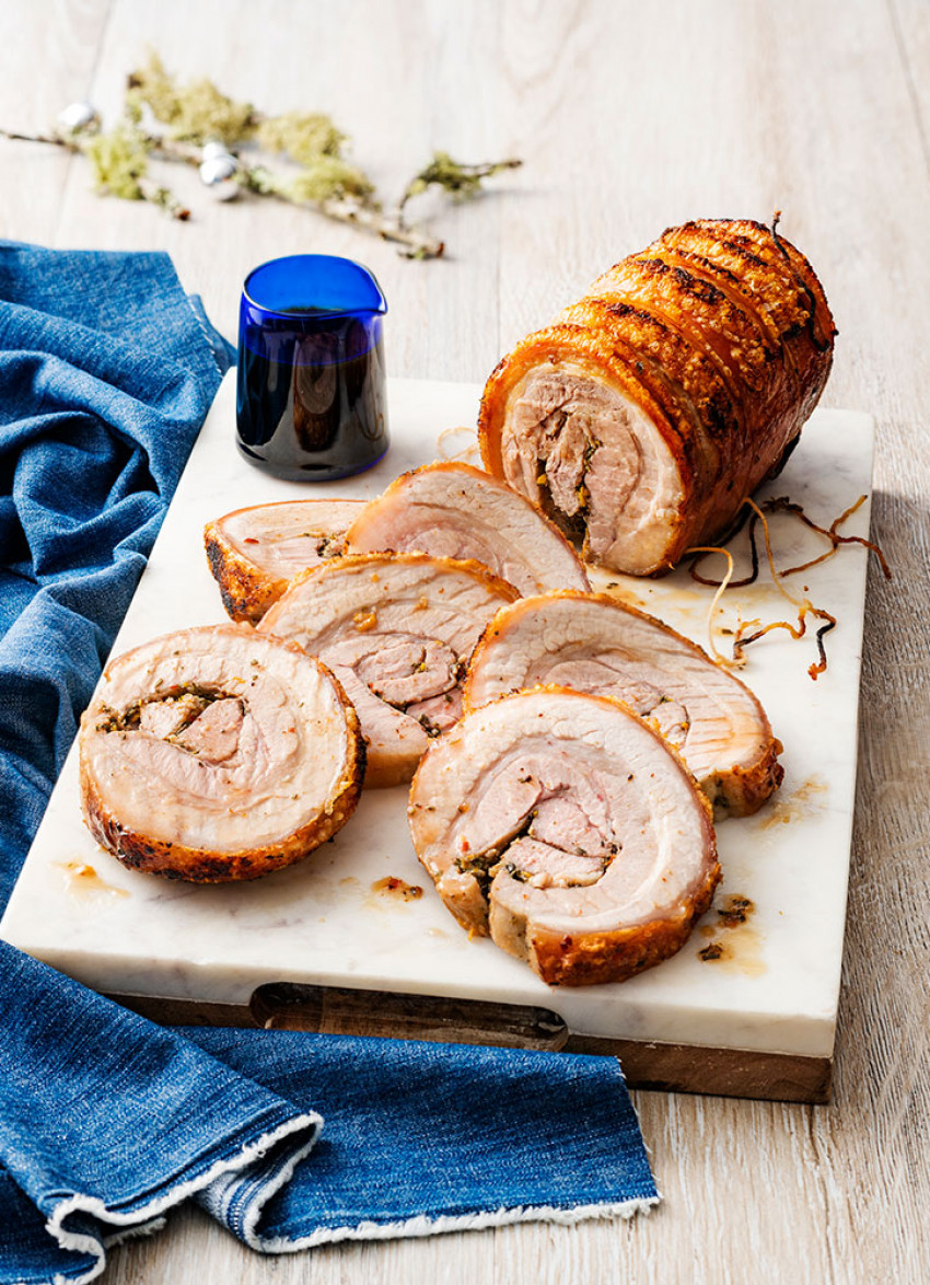 Juicy tender meat infused with aromatic Italian herbs enrobed in crispy, crackled skin – roast pork at its finest!