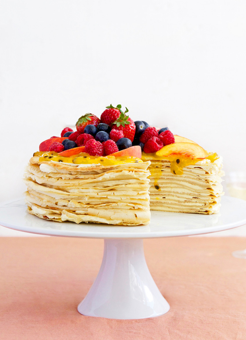 This is such a fun dessert, and a wonderfully different way to approach cake. The longest process is making the crepes; after that it all comes together rather fast.