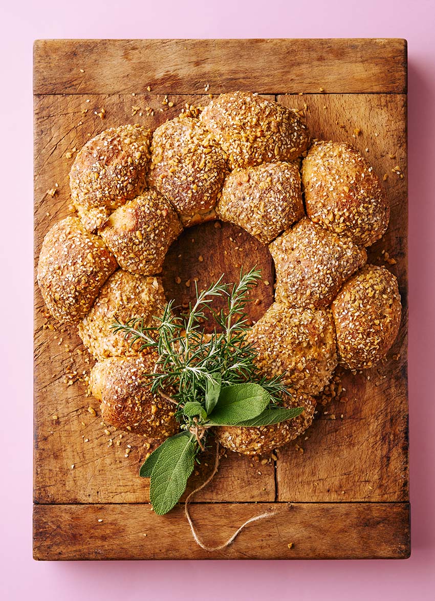 Walnut, Herb and Parmesan Brioche Wreath Pull-Aparts