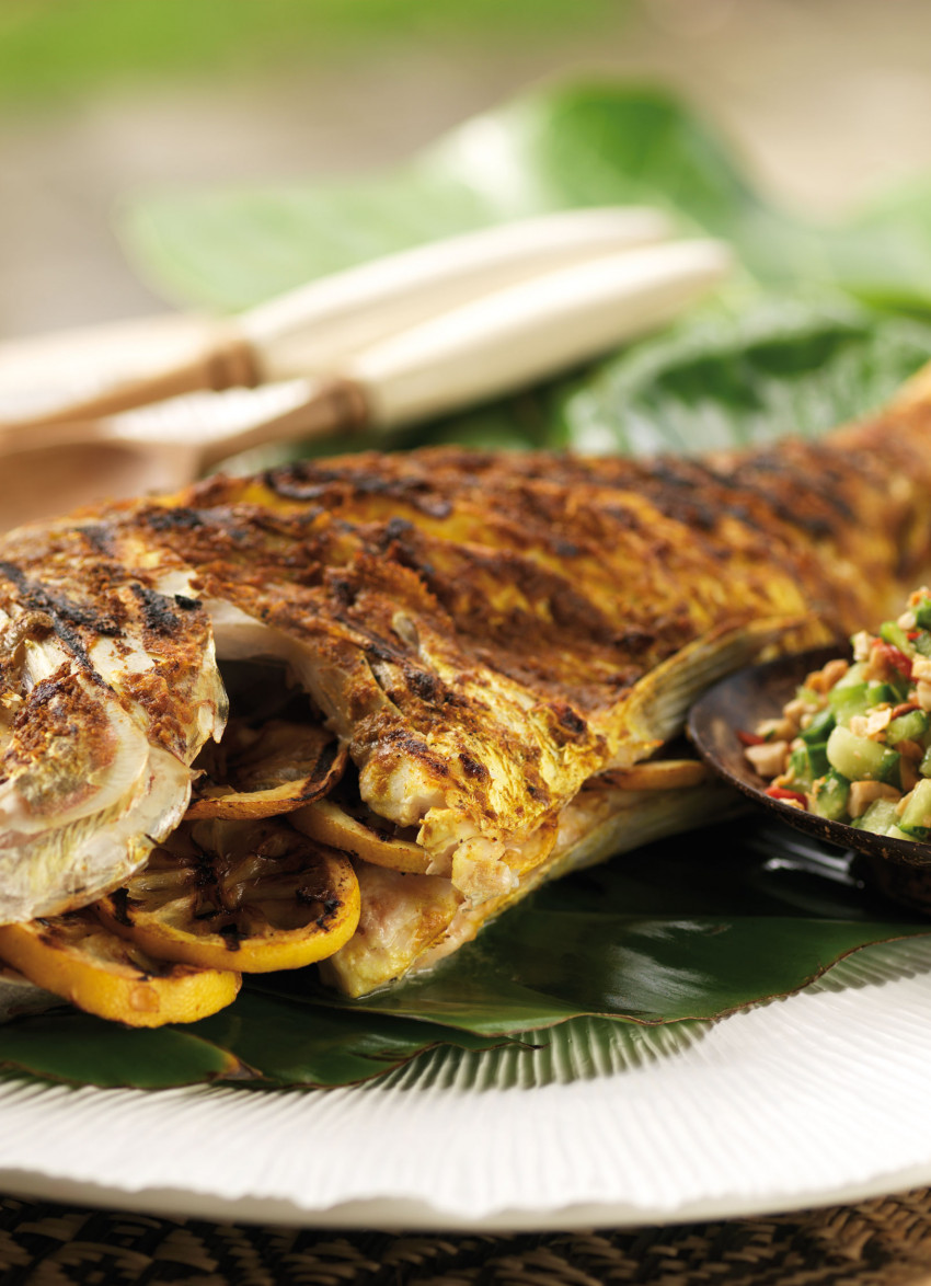 Whole Grilled Fish with a Cashew Nut and Cucumber Dressing