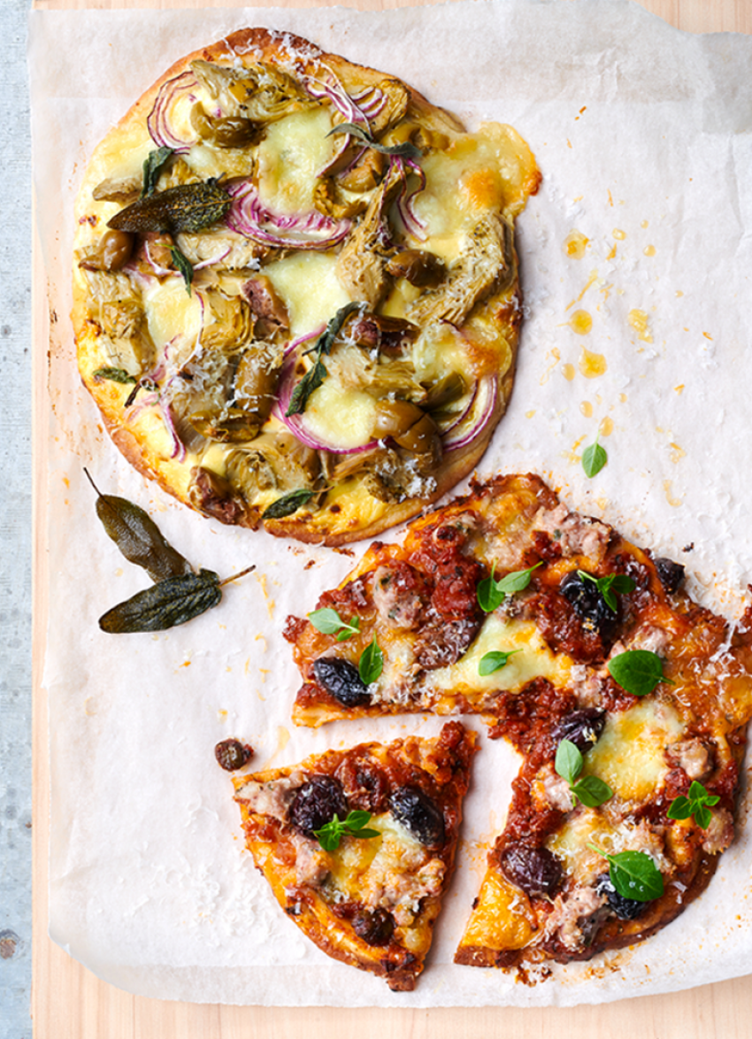 We like Spain's idea of creating pizza, or as they call it, coca, with a thin flaky pastry base and a liberal application of oilve oil. The coca, most popular in Catalonia, can be savoury or sweet, with a closed or open top and common toppings include tomatoes, mushrooms, olives, anchovies, pine nuts and citrus rind.