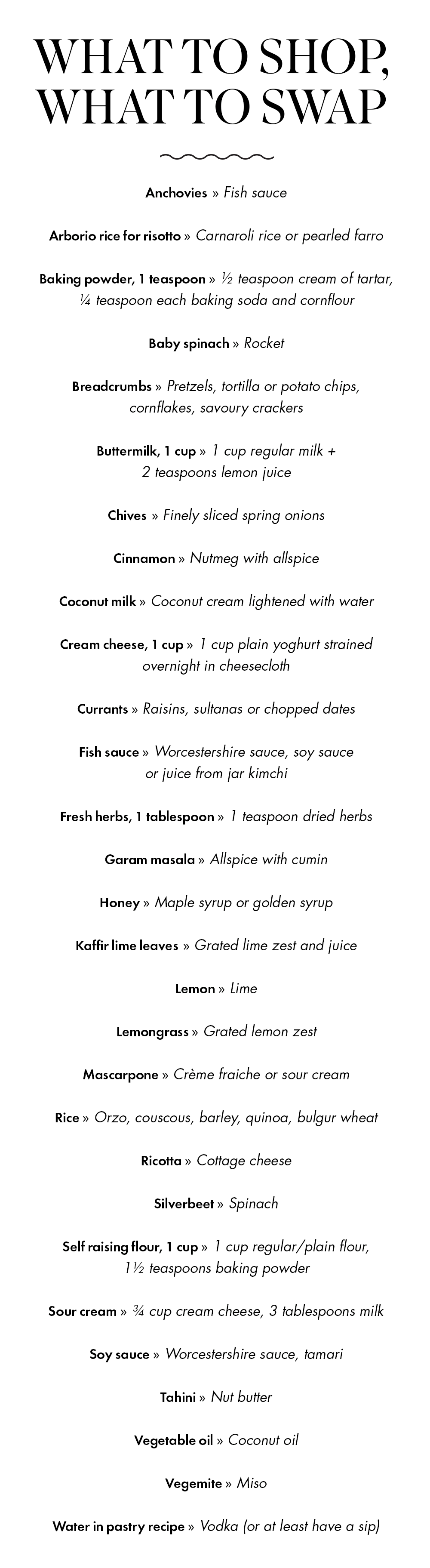 The Dish team list of ingredient alternatives